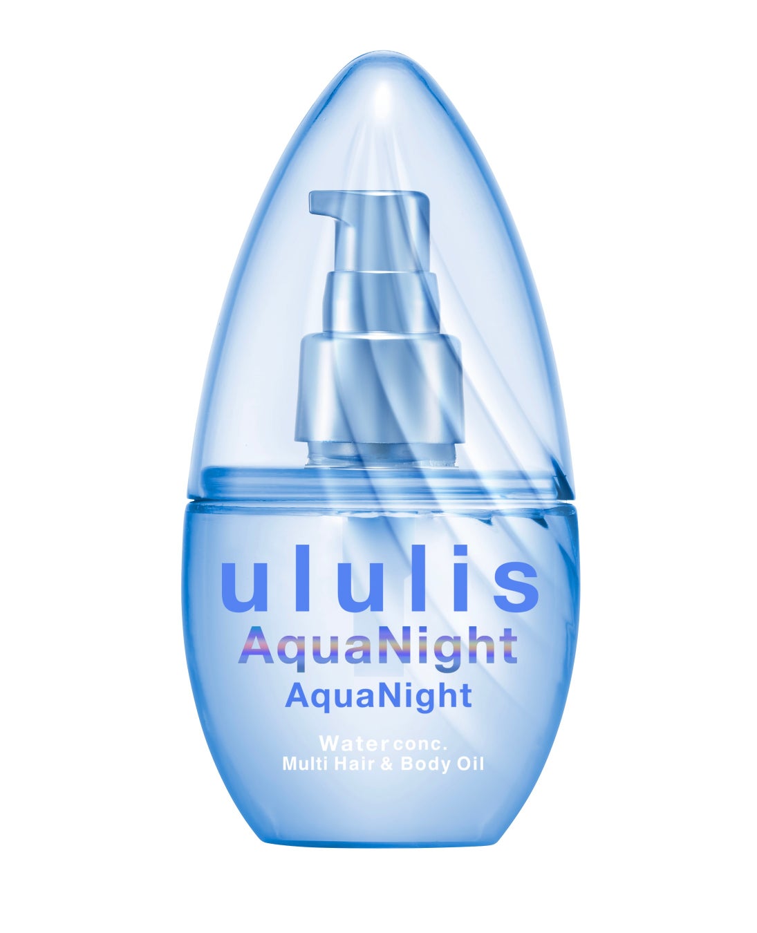 今回発売する 『ululis Aqua Night (ウルリス アクア ナイト』は、ナイトスチーマー成分*1+ナイトヴェール成分*2配合によって、しっとりした髪や肌へ導きます。