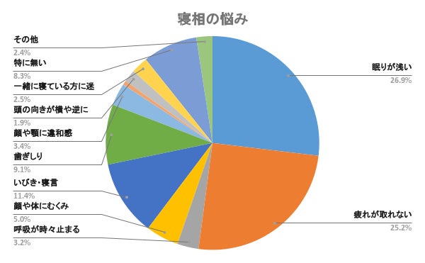 - 寝相の悩みで一番多いのは眠りが浅い26.9%