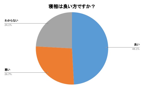 寝相が良いと答えた方は全体の49.1%となりました