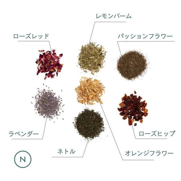 BED TIME TEAには、欧米で古くから心のケアに用いられてきたパッションフラワーやオレンジフラワーをはじめ、ホッとしたい時におなじみのハーブ7種を贅沢に配合しています。