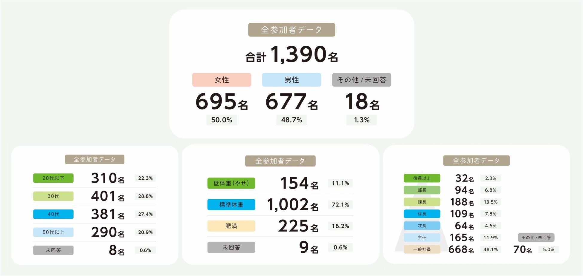 ◎参加人数:2,385名(うち、14日間の計測を完了した1,390名のデータを集計)