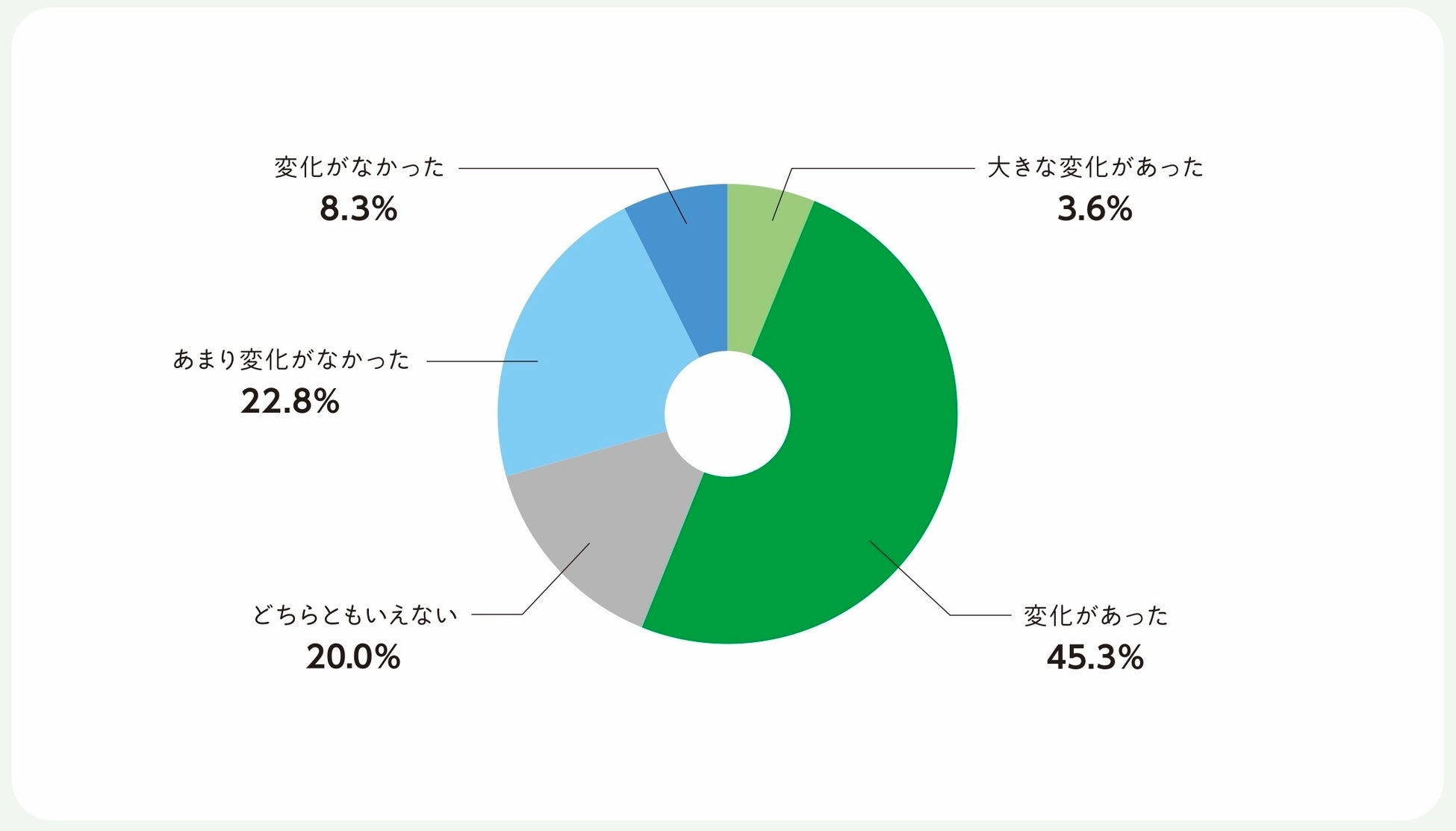 「本運動に参加して睡眠の意識に変化がありましたか?」という質問に対して「大きな変化があった」「変化があった」と回答した人が約50%を占め、半数近くの人が、本運動参加による睡眠への意識変化を実感しました。