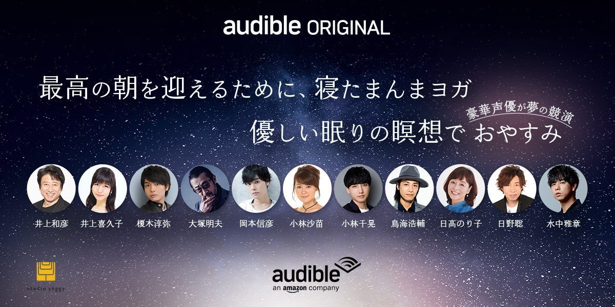 世界最大級のオーディオブックおよび音声コンテンツ制作・配信サービスであるAmazonオーディブル(以下、Audible)は、世界睡眠デーである本日3月17日に、大塚明夫さん・日髙のり子さん・井上和彦さんら声優11名の朗読で優しい眠りへと誘う、就寝前の専用ポッドキャスト『寝たまんまヨガ 優しい眠りの瞑想』の配信を開始します。