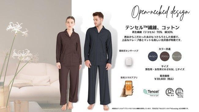商品名:睡眠計測ウエア テンセル混開襟シャツタイプ(メンズ・レディース)