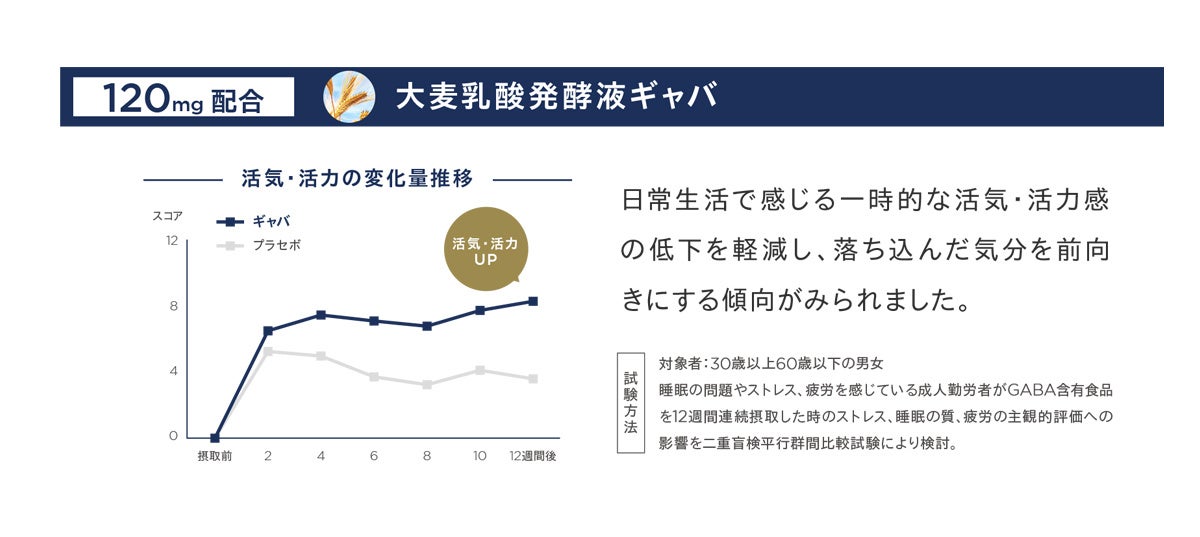 休息の質が高まることで、疲労感やウトウト感がおさまり、気分の落ち込みや活力感低下の軽減にもつながります。休息の悩みがあっても薬に頼りたくはない人のお守りドリンクです。