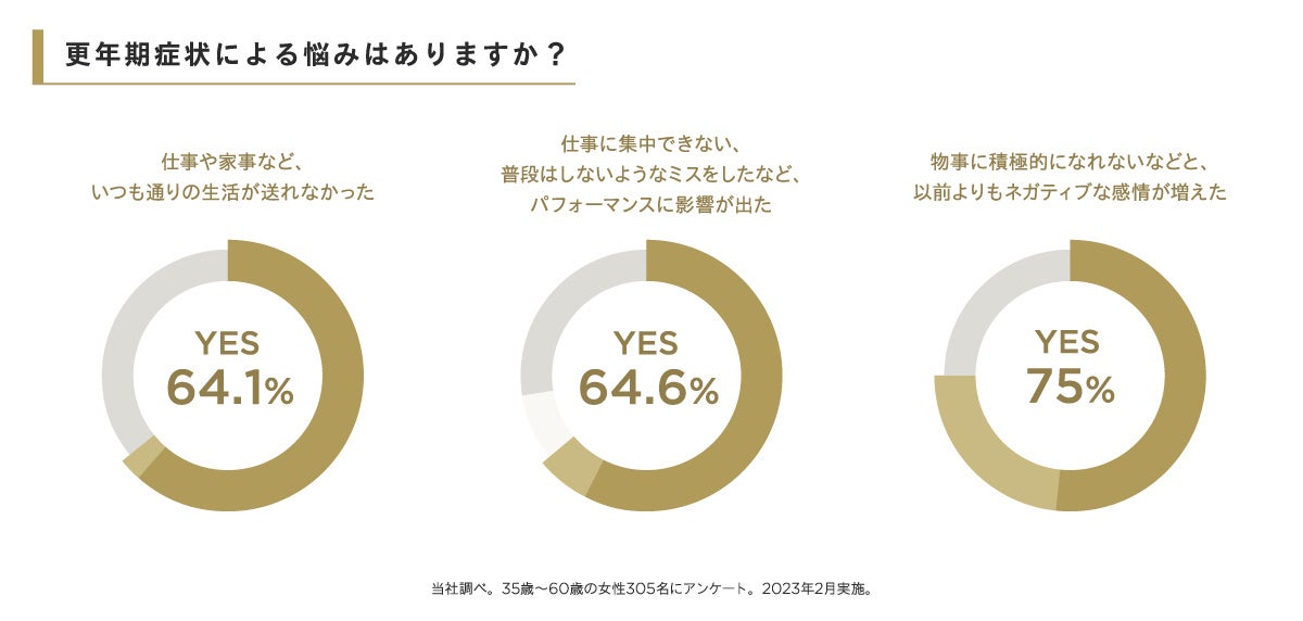 さらに、64.6%の人が「更年期症状を理由に、仕事に集中できない、普段はしないようなミスをしたなど、パフォーマンスに影響が出たことはある」と回答。