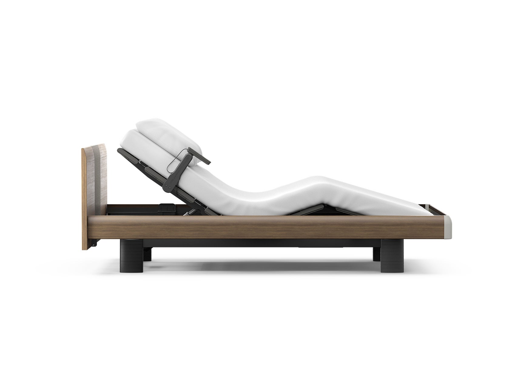 今回のモデルチェンジでは、ベッド内のモーターや配線コードなどが見えにくい仕様を実現し、デザイン性の向上を目指しました。また、手元スイッチは使い勝手を見直し、従来品と比べて、よりコンパクトで持ちやすい形状としたほか、本を読むときやリラックスした姿勢などのお気に入りのポジションを登録できる3つのメモリーボタンやLEDライトなど便利な機能を追加しました。