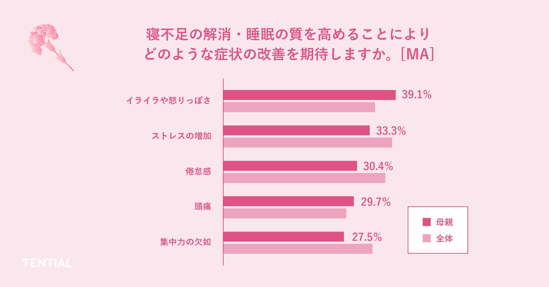 健康で前向きな社会の実現を目指し、ウェルネス関連事業を展開する株式会社TENTIAL(所在地:東京都中央区、代表取締役CEO:中西裕太郎、以下「テンシャル」)は、日本全国の20~50代女性510人を対象に「母の日と睡眠の質に関する調査」を実施いたしました。