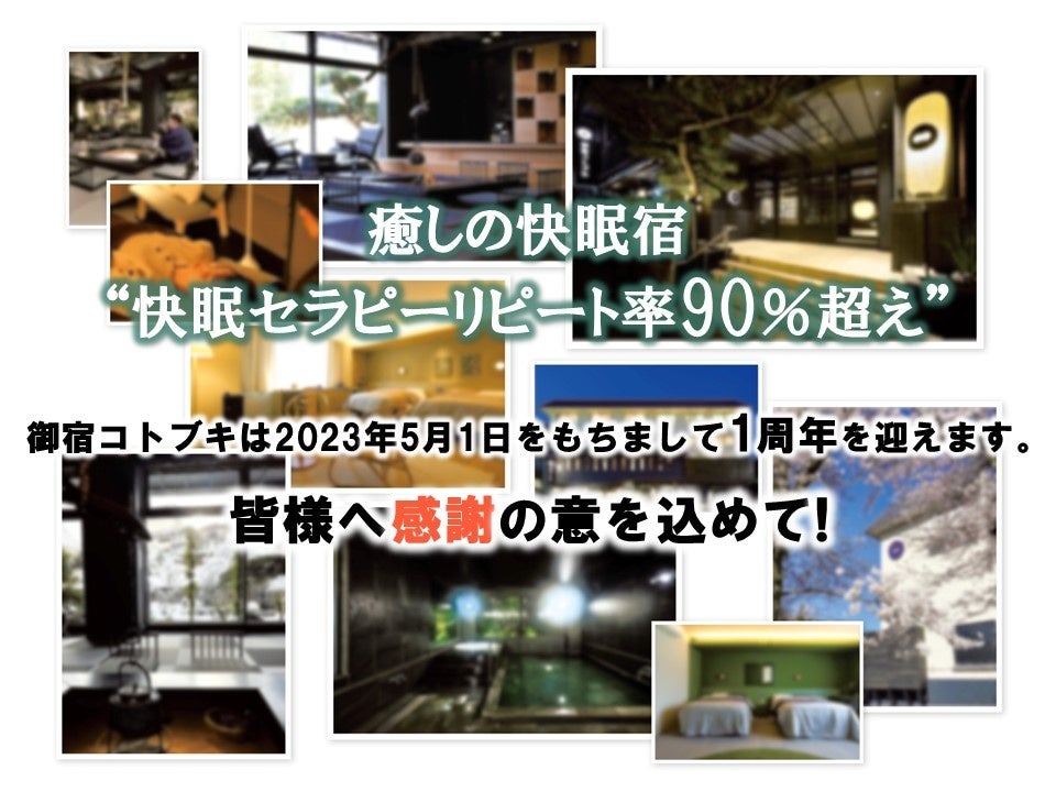 御宿コトブキ開業1周年の感謝の意を込めて、快眠ヘッドセラピー付きのプランで宿泊されたお客様にオリジナル快眠アロマミスト30ml(販売価格¥1,980)を1組に1本プレゼントいたします。