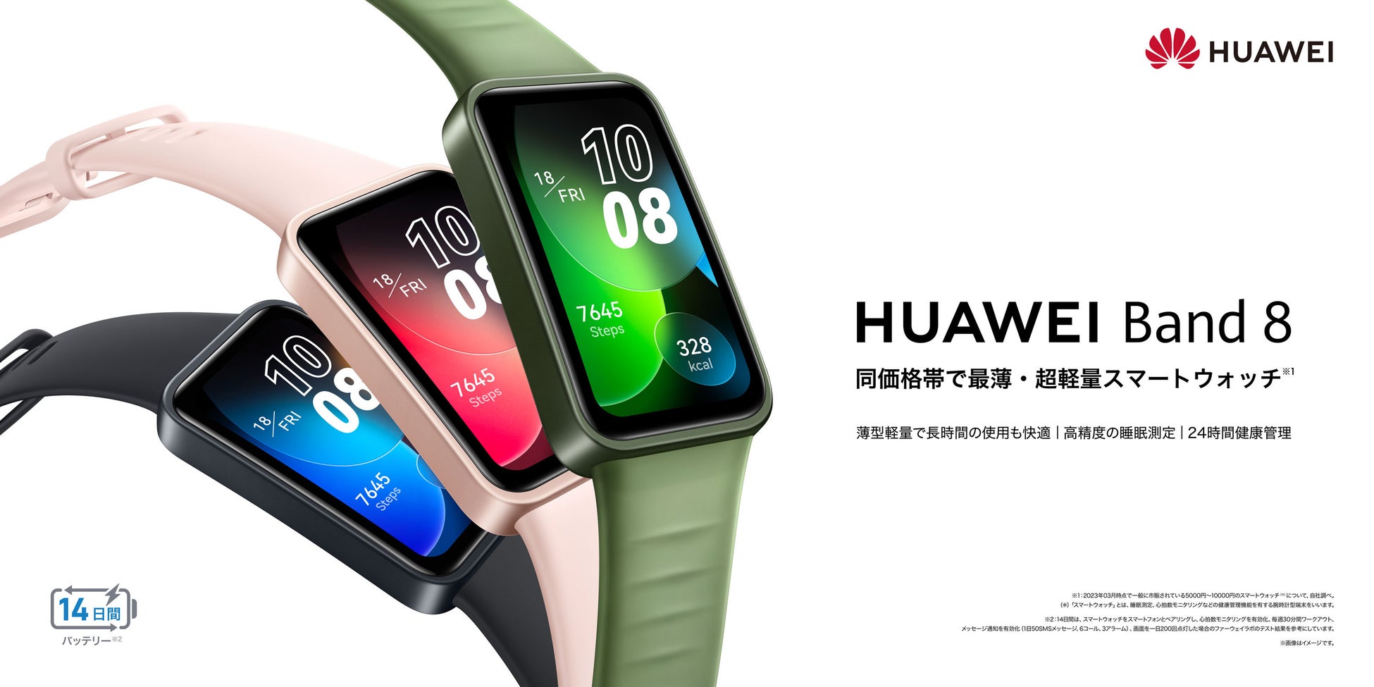 超薄型軽量で長時間装着しても快適!睡眠モニタリングが進化したスマートウォッチ『HUAWEI Band 8』 5月11日(木)より発売
