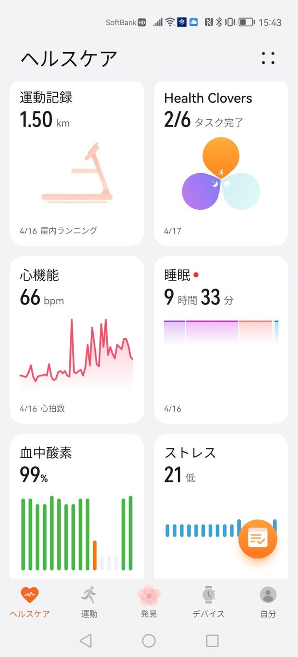 睡眠モニタリングのほかにも、血中酸素モニタリング、心拍数モニタリング、ストレスモニタリング、生理周期トラッキングなど健康管理に役立つ機能を搭載しています。スマートフォンと連携して使うHUAWEI Healthアプリは、Android 6.0以降、iOS 9.0以降に対応しており※4、総合的な健康モニタリングデータを一目で確認できます。