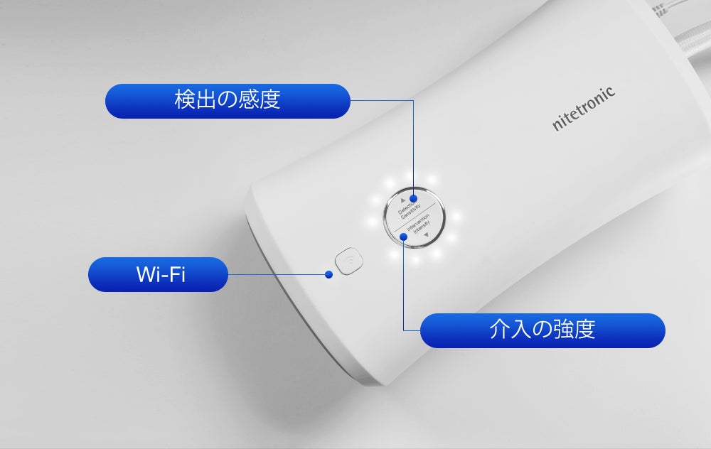 アプリを利用して設定できる一方、Nitetronic Z6は手動制御も可能、検出の感度と介入の強度を5段階で調整できます。操作方法はとてもシンプルで、ご年配の方でも簡単に使える機能です。
