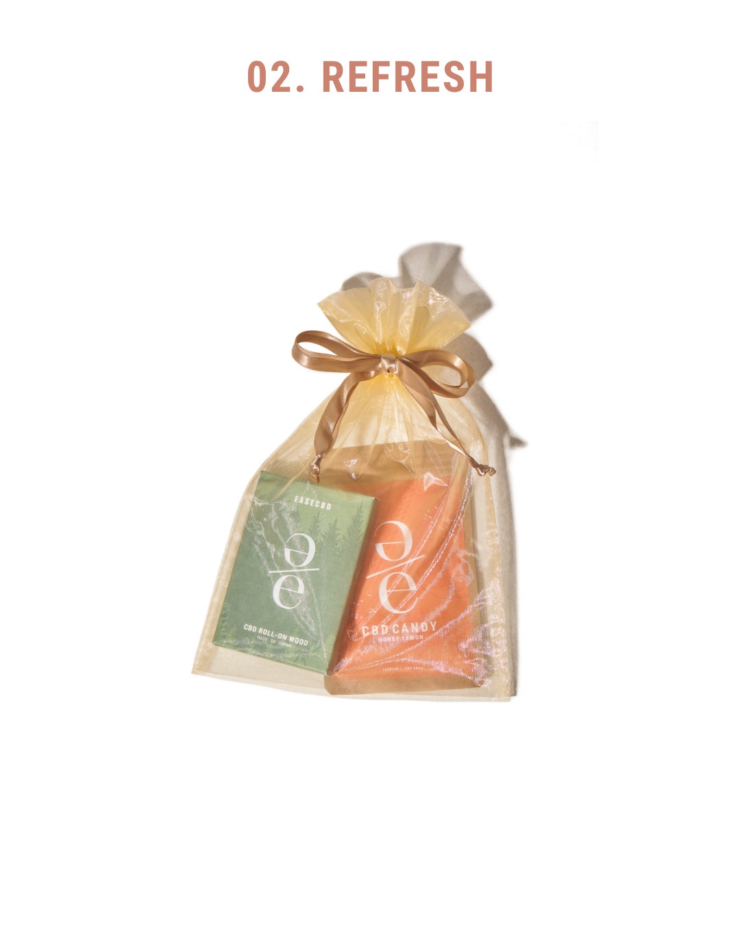 【REFRESH】は、ロールオン+キャンディという、はじめてのCBDにもオススメの2つに加えて、特別なポストカードとバッグが付属。