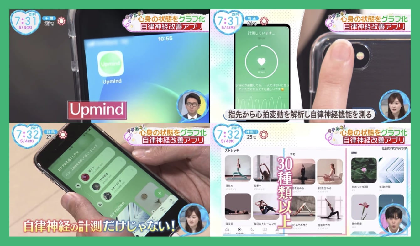 日本テレビZIP!の「キテルネ!」コーナーでヘルステックとしてUpmindをご紹介頂きました。今後も、より多くの方が身近に取り入れやすいヘルスケアの手段として浸透できるようサービス改善に取り組んでまいります。
