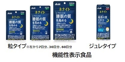 「ネナイト」は、睡眠の質を高めること(起床時の疲労感や眠気を軽減すること)が報告されているL-テアニンが配合された機能性表示食品です。2016年より「粒タイプ」、2020年より「ジュレタイプ」を展開しています。