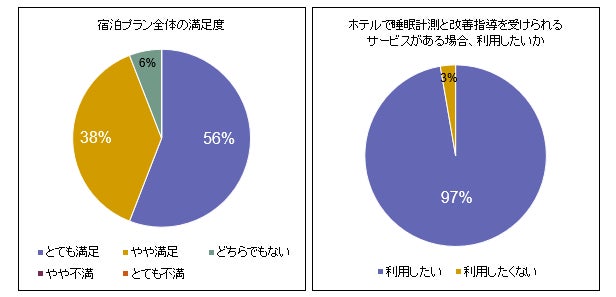 ■ 宿泊施設での睡眠計測サービス提供に向けS’UIMINが2022年におこなった実証実験では、利用者の93.8%が「とても満足・やや満足」と回答し、97.2%の方が「ホテルでの正式提供の際に利用したい」と回答しました。また、「深い睡眠の量や自分では覚えていない一瞬の覚醒まで可視化され、自分の感覚では分からない睡眠状態をとても詳しく見れた」、「腕時計型のウェアラブル端末と脳波計測の結果を比べることができた」、「不眠に悩んでいたが、自分で思っているよりよく眠れていることに気づいた」といった声もいただきました。この宿泊プランでは、このようなご自身の眠りとあたらしい視点から向き合う体験をご提供いたします。