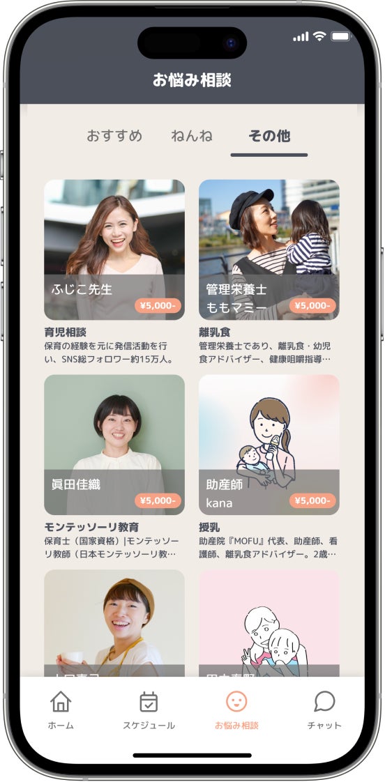 助産師、管理栄養士、離乳食/幼児食アドバイザー、保育士、言語聴覚士、理学療法士、英会話講師、モンテッソーリ教師等の専門知識を持ったコンサルタントを迎え、今までありそうで無かった、お子様に関する幅広い相談が受けられるプラットフォームを展開しています。