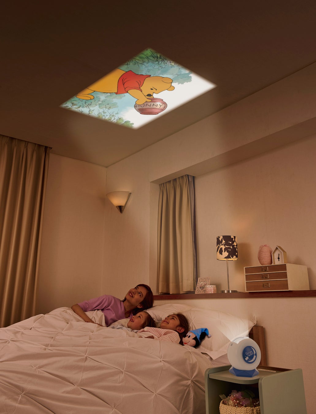 睡眠に最適な環境でリラックスして毎日の絵本を読み聞かせができる『ドリームスイッチ2』は、シリーズ史上最大130コンテンツを搭載しました。絵本は、日本語、英語の二か国語に対応し全64冊。絵本を連続しての再生機能により最大4作品を1度の動作で読み聞かせが可能です。その他には、就学時までには習得しておきたい時計の読み方、あいうえおなど勉強のコンテンツを搭載。さらには、ディズニー映画の名シーンで英語を学べる「えいがでEnglish」などのコンテンツ66作品を収録しました。「ドリームスイッチ」シリーズ史上最大の豊富なコンテンツによって、おやすみ前の読み聞かせに毎日使用しても飽きること無くご使用いただけることは勿論のこと、新習慣のサポートさらには勉強までを1台で3役をこなす逸品です。