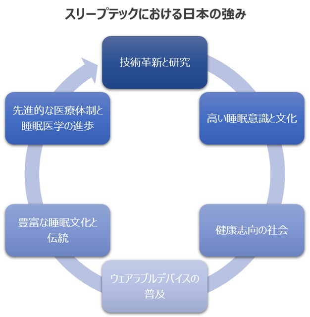 これらの要素が組み合わさり、日本はスリープテックの分野で独自の強みを持っています。睡眠の質と健康への取り組みをサポートし、新たなイノベーションやソリューションの創造に向けて、日本のスリープテックは大いなるポテンシャルを秘めています。