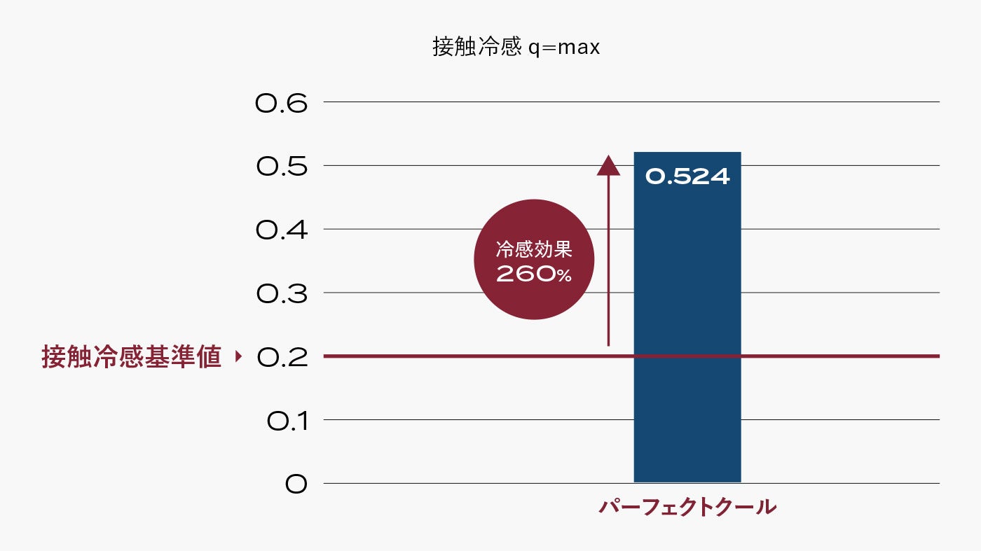 ※パーフェクト クールのq-max値0.524を接触冷感基準値0.2で割って約260%と計算