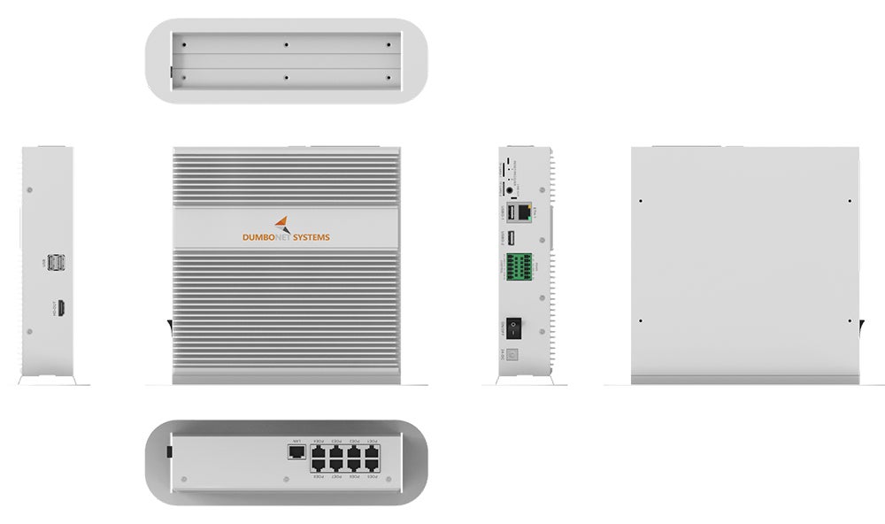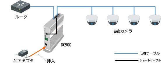 専用のカメラを使用する必要はありません。天井、壁などの取付位置、また撮影範囲に合わせて、市販のWebカメラを接続することが可能、DC900には8つのPoE対応LANポートも備え、配線工事をシンプルに行えるよう配慮しています。