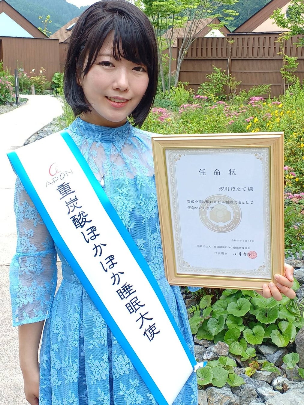この度一般社団法人重炭酸温浴NO療法普及協会(所在地:東京都新宿)は、日本一大使名の多いタレントとして有名な「汐川ほたて」さんを5月30日付けで【重炭酸ぽかぽか睡眠大使】に任命し、2023年6月13日(火)に大使任命式を実施致しました。