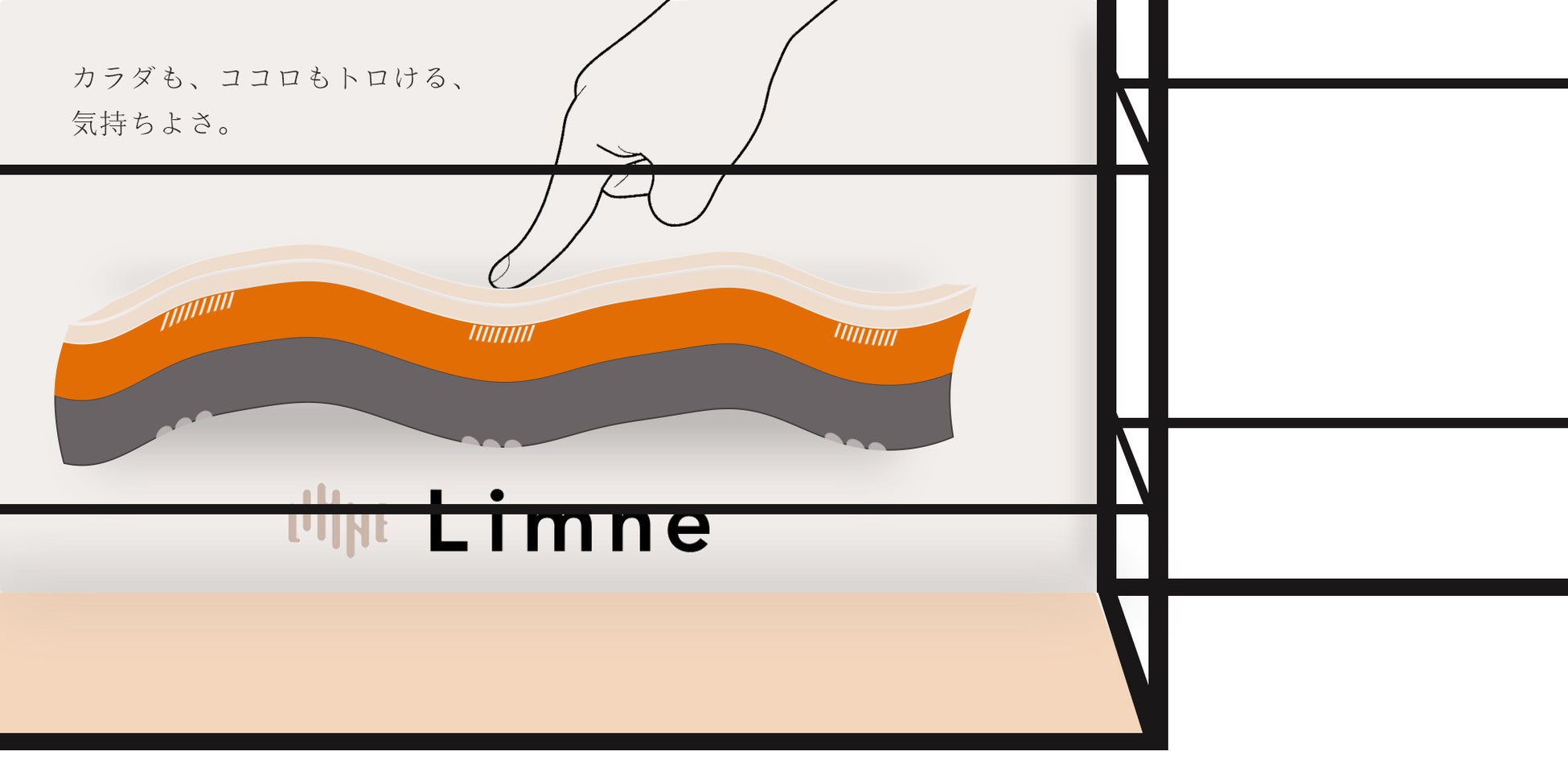 Limne睡眠体験型・ショールームでは、商品の持つ「やわらかな触感=“気持ちよさ”」、