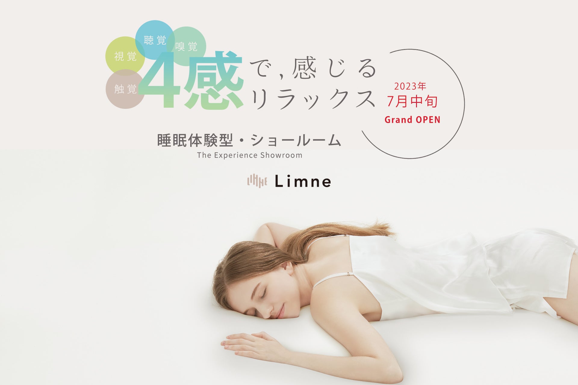 今回、Limne the Mattressの特長である、“気持ちよさ”を実際に体験いただけるよう、恵比寿ガーデンプレイス・センタープラザB1に、「睡眠体験型ショールーム」を2023年7月中旬に新規オープンします。