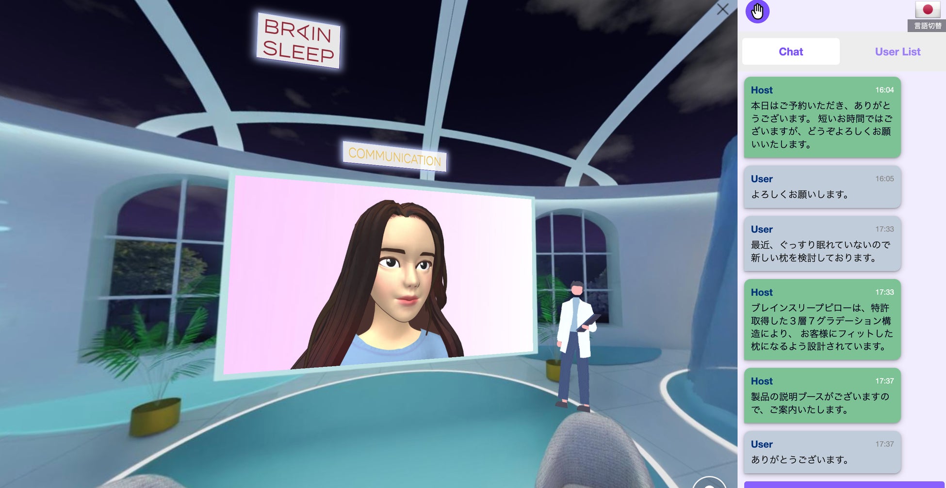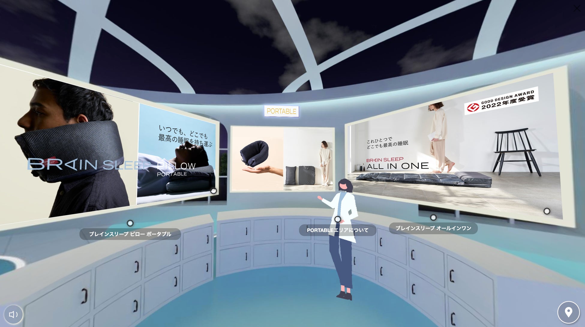 ブレインスリープは創業以来、リアル店舗の出店よりECコマースやPOP UPストアでの展開を中心に自社プロダクトの販売をしてまいりましたが、同時にお客様より実際に見る・触れる・体験できる・試せる場所を求めていただく声もいただいておりました。そんな中、株式会社ブレインバースとトランスコスモス株式会社の新規共同事業であるVRとARの技術を組み合わせたVR空間とバーチャル接客サービスのローンチ第一弾としてお声をかけていただき、最先端のテクノロジーで睡眠を科学するブレインスリープらしい新しいショッピングの形を提供する機会をいただきました。