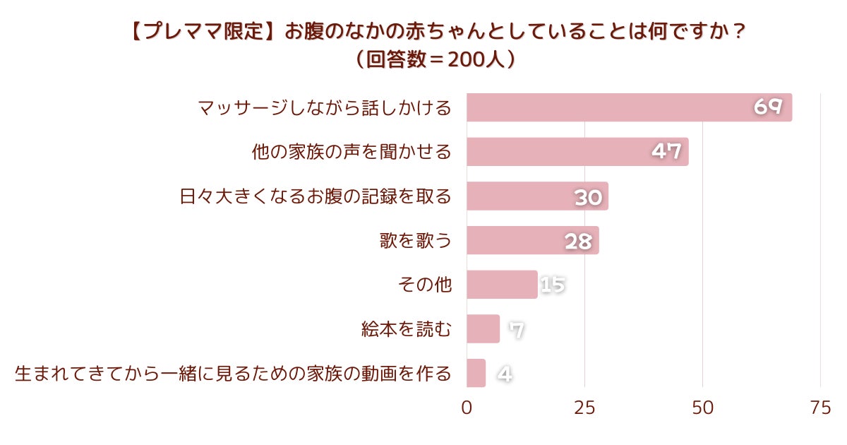 【調査結果】【プレママ限定】お腹のなかの赤ちゃんとしていることは何ですか?1位は『マッサージしながら話しかける』!