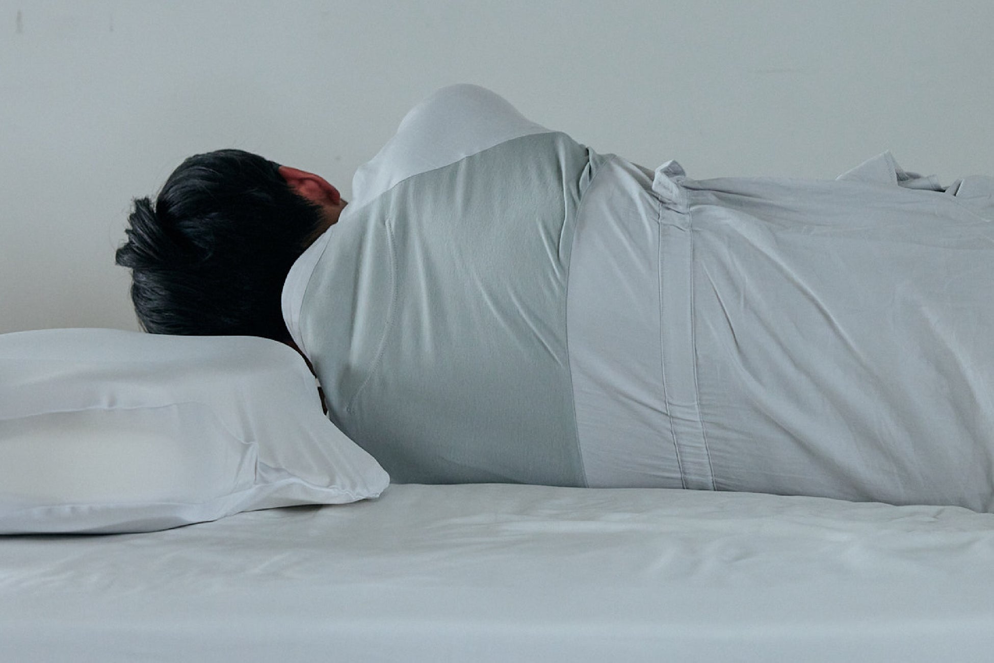 背中の肩甲骨付近は、伸縮性の高い生地を使用することで、肩甲骨部分の可動域を広げます。そのため、寝返りの際のつっぱり感が軽減され、スムーズに寝返りを打つことができます。