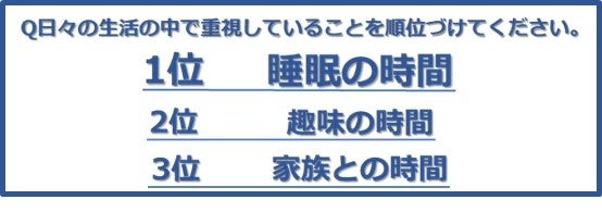 ①「睡眠の時間」が日々の生活での重要度1位に、