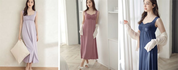 《ラクシア for room》ナイトブラワンピース マキシ丈(全9color)/ミモレ丈(全4color)