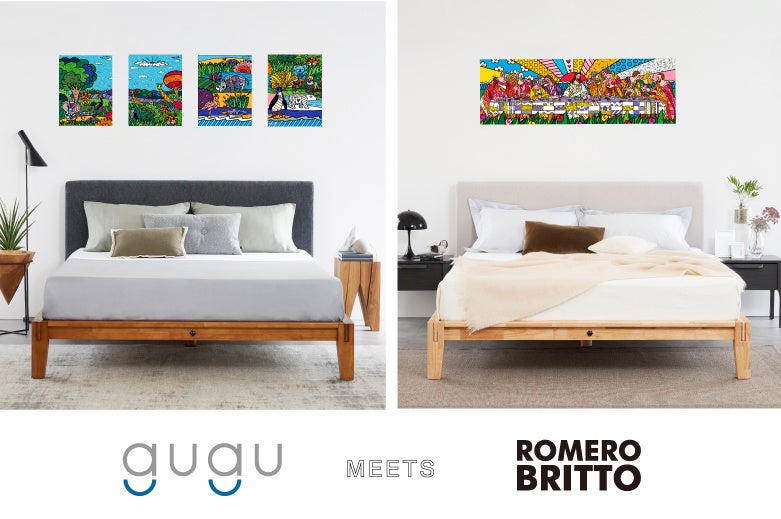 その第1弾となるアーティストはロメロ・ブリットです。人々に夢を与える作品を自由な発想で生み出してきたロメロと、自由な発想を大切にしながら「良質な眠り」を追求してきたgugu。今回のコラボレーションでは、両者の出会いによって生まれるポジティブなエネルギーを、寝室という空間を使って表現しました。POP UPスペースには、原画を含むロメロの作品を複数展示。guguからはマットレス、ベッドフレーム、犬用ベッドの全3商品をご用意。気になる商品に直接触れてお試しいただけます。さらに、家族でお楽しみいただける体験イベントも開催。