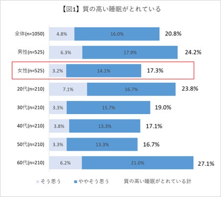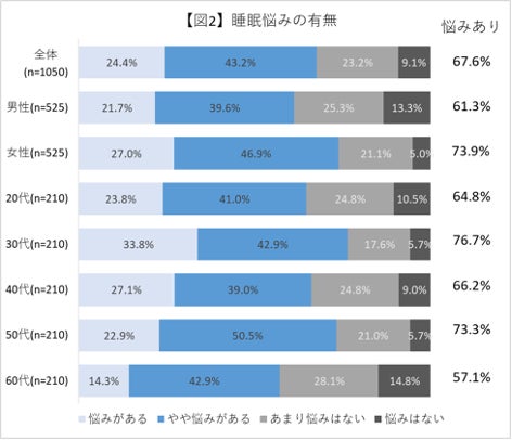 - 質の高い睡眠がとれず、睡眠に悩みを抱える人は依然多いという結果に