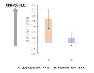 株式会社H2O[エイチツーオー]※4の共同研究プロジェクトである「ululis×脳科学LAB」の実験では、睡眠中も嗅覚は働き続けており、リラックス効果が期待できる香り(ululis Aqua Night)を嗅ぐことで、比較条件の香り(ululis PINK neko)を嗅いだときよりも睡眠の質※2が6.4倍※3向上することが明らかになりました。