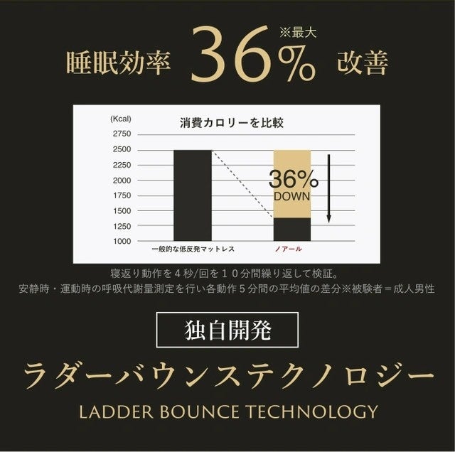 寝返りをしやすくして、より快適に寝られるように設計された独自の技術“ラダーバウンステクノロジー”により睡眠効率を最大36%改善し、睡眠の質向上を実現。