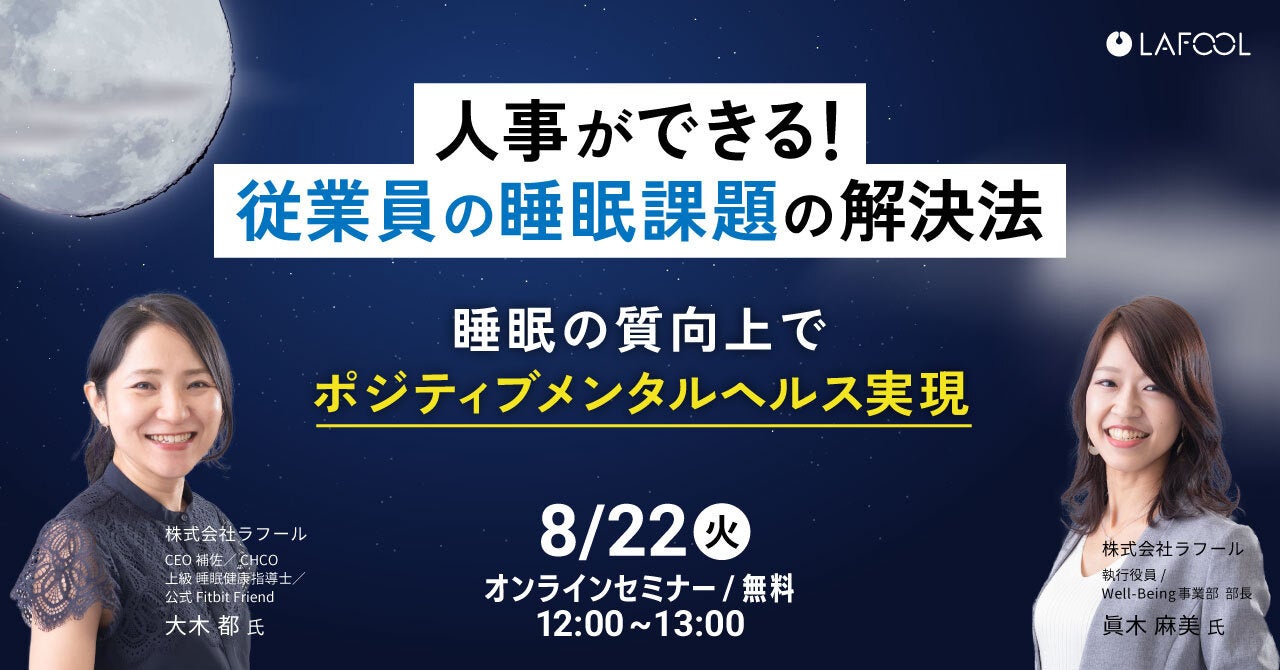 人的資本経営支援のラフール、「人事ができる!従業員の睡眠課題の解決法睡眠の質向上でポジティブメンタルヘルス実現」をテーマに、オンラインセミナーを開催