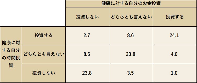 〈図表3:健康投資【お金】×健康投資【時間】のマトリックス図(全国、男女計)単位:%〉