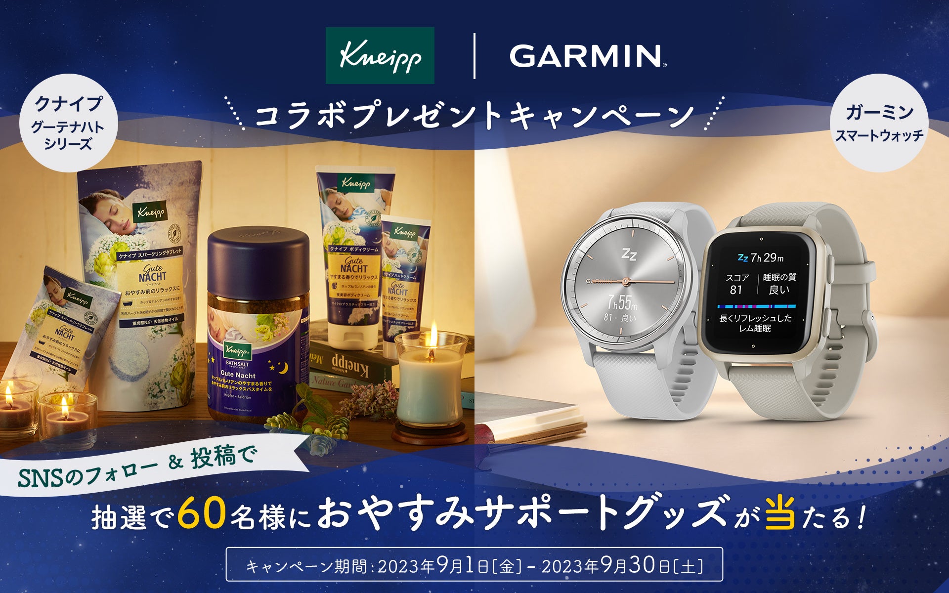 Kneipp<クナイプ>×Garmin<ガーミン> 『ちゃんと眠れてる?おやすみサポートキャンペーン』を実施、抽選で60名様にプレゼント ~秋の夜長こそしっかり眠ろう~