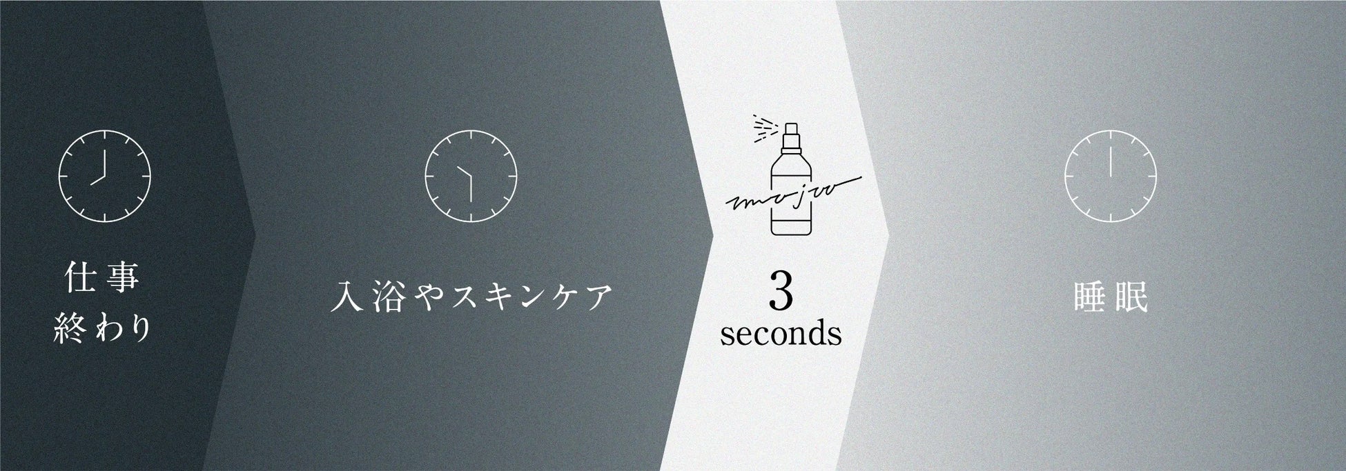今回プログラム内で利用する、mujuuアロマミストは、忙しい毎日をおくる方に簡単にストレスケアができるような“アロマピローミスト”として設計。たった3秒、枕やベッドに2〜3プッシュ。入眠前の一瞬を変えるだけで、ストレスケアができるようになります。