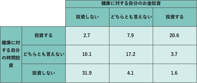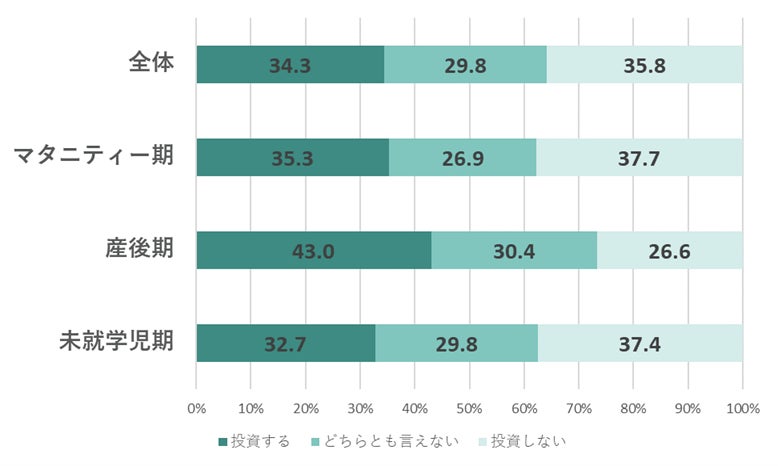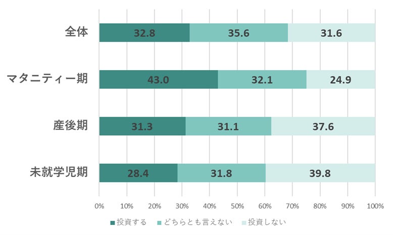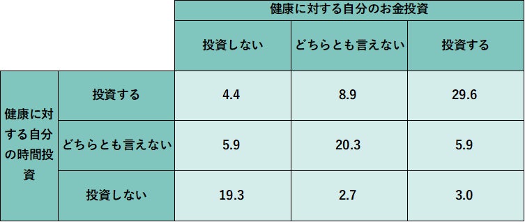 - 健康に対して【時間】と【お金】両方に投資する人はマタニティー期が最多の29.6%