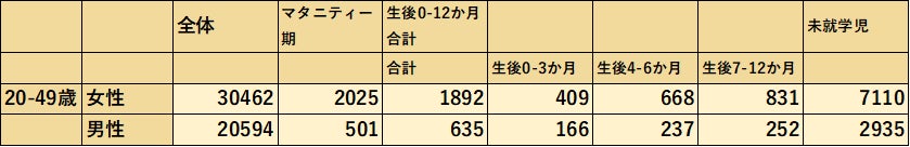 ※産後女性、産後男性の条件【エリア:全国、年齢:20-49歳、産後0-12ヶ月】