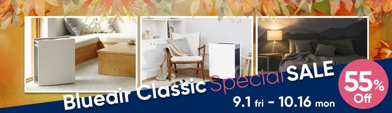 きれいな空気がもたらす快適な毎日を提案すべく、年間を通してブルーエア公式サイト(blueair.jp)では、様々なキャンペーンを実施しております。この度は9月1日(金)から10月16日(月)まで、ブルーエアClassicセールを開催いたします。