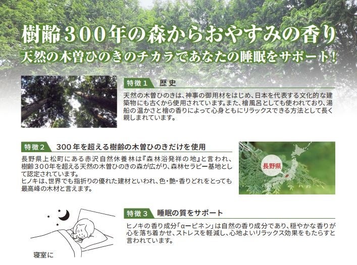 【特徴2:300年を超える樹齢の木曽ひのきだけを使用】