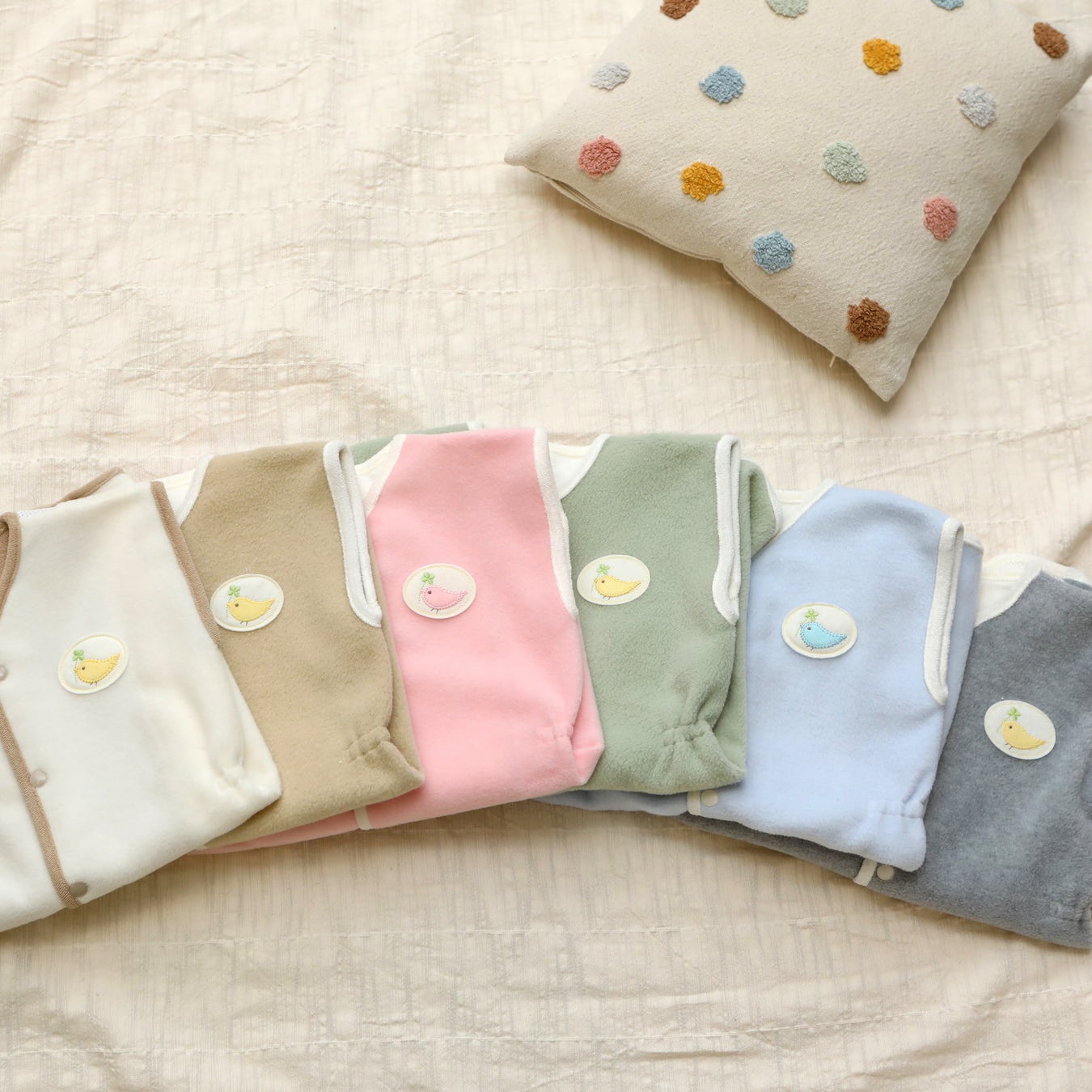 (※¹)「快適2wayおねんねスリーパー」シリーズは秋冬用のフリース素材、通年用のタオル素材、真夏用のガーゼ素材の3タイプとなります。