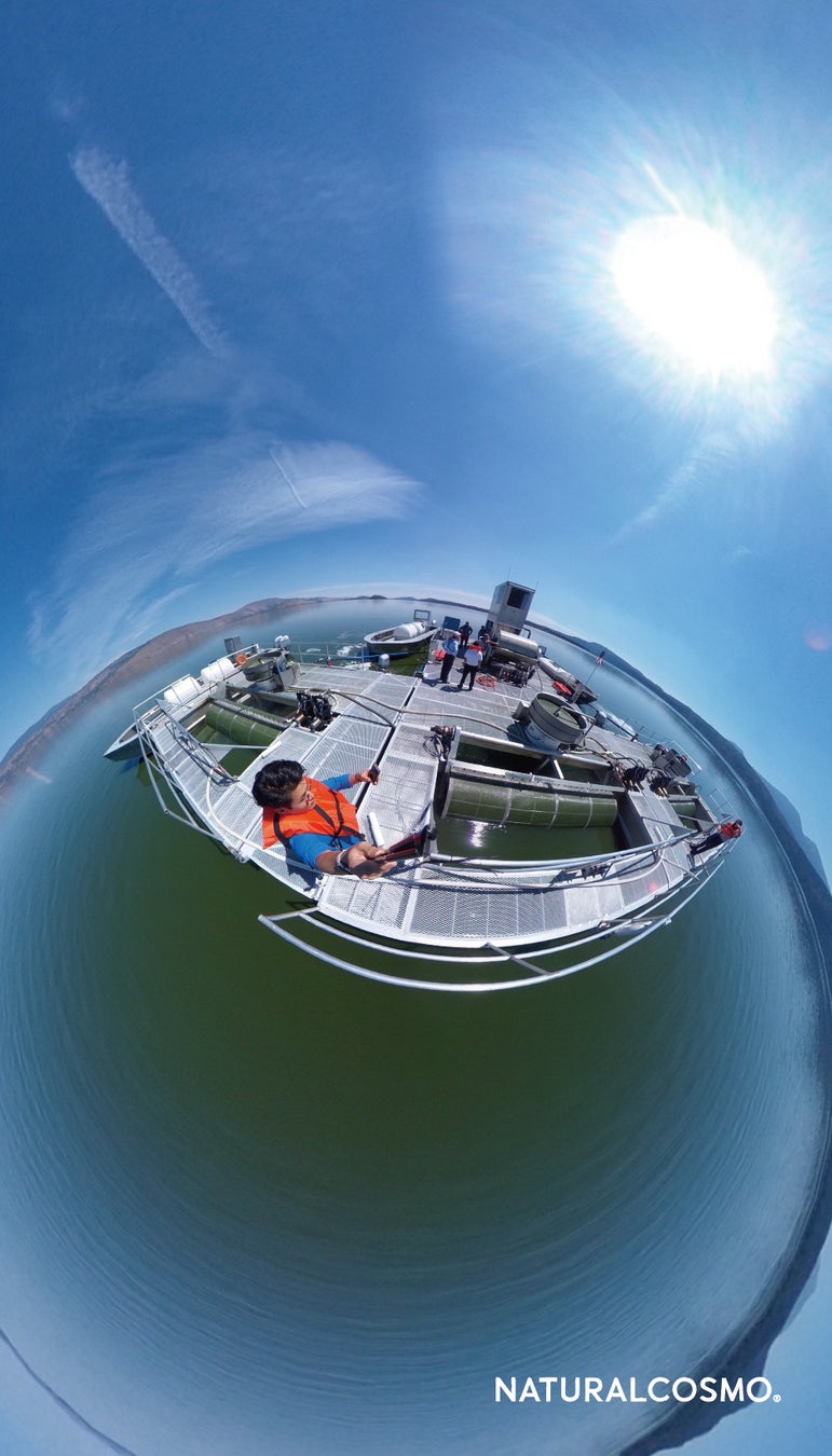 ブルーグリーンアルジー収穫風景(アメリカ合衆国オレゴン州)