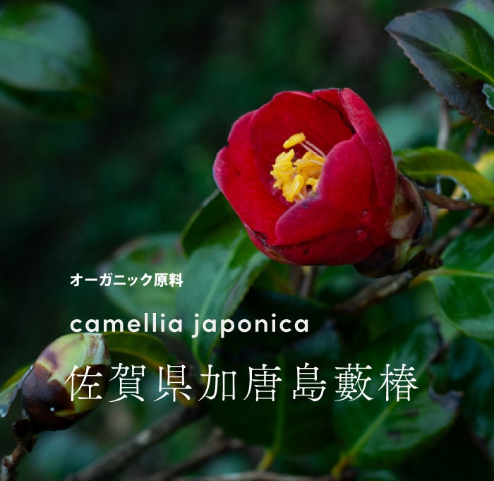 佐賀県加唐島。日本書紀に「椿の島」と書かれたほど、野生の椿の木が自生する島で、株式会社リトコス代表の三田かおりさんが、島民の皆が椿から利益を得られる仕組みを作り上げたサスティナブルな椿油を使用。