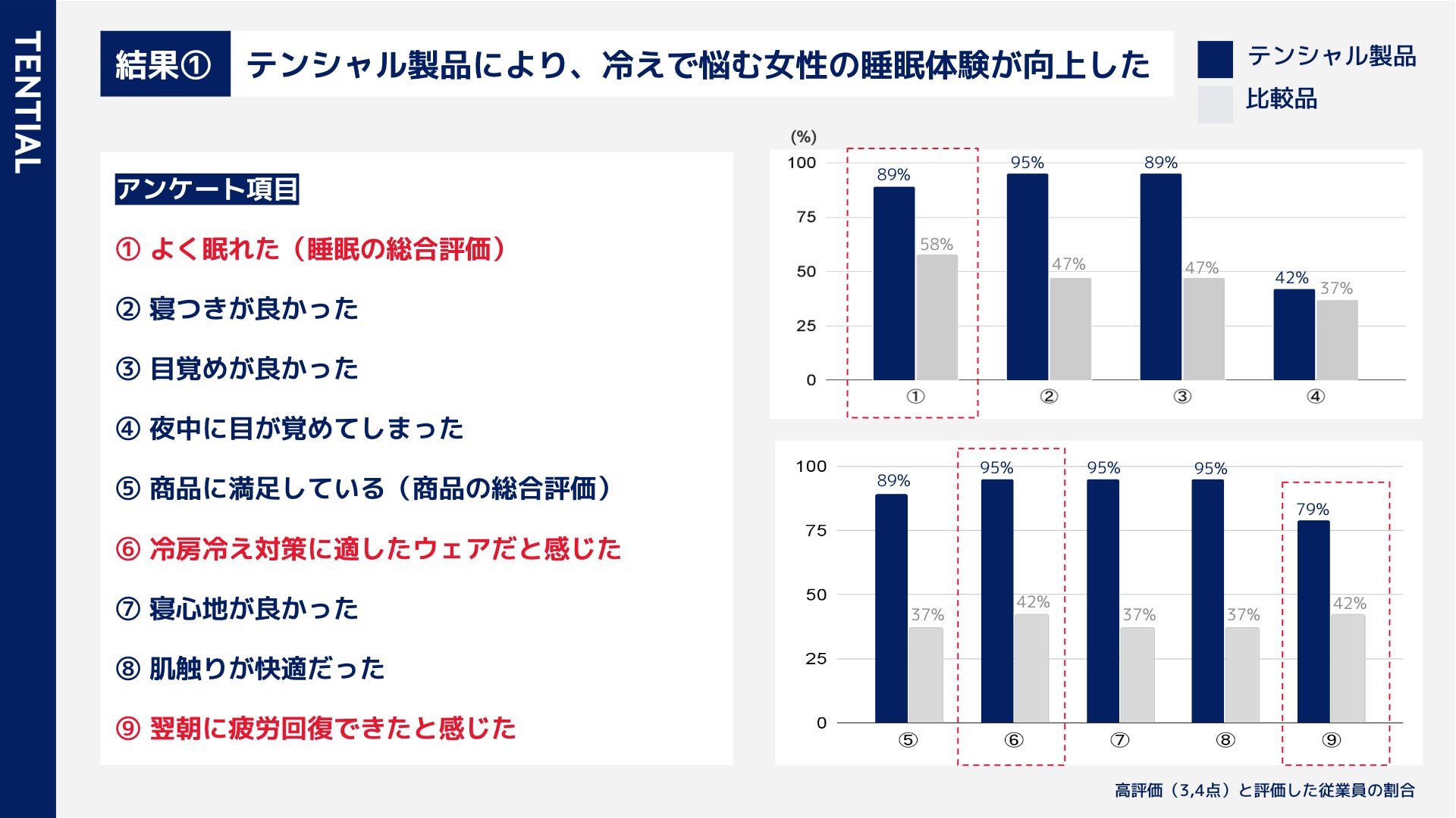 主観評価:テンシャル製品により、冷えで悩む女性の睡眠体験が向上した