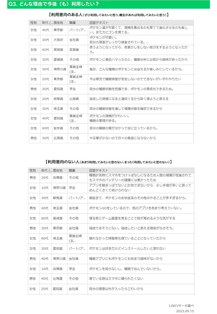 「Pokémon Sleep」について利用意向のある人、利用意向のない人とそれぞれその理由を自由回答形式で聞きました。